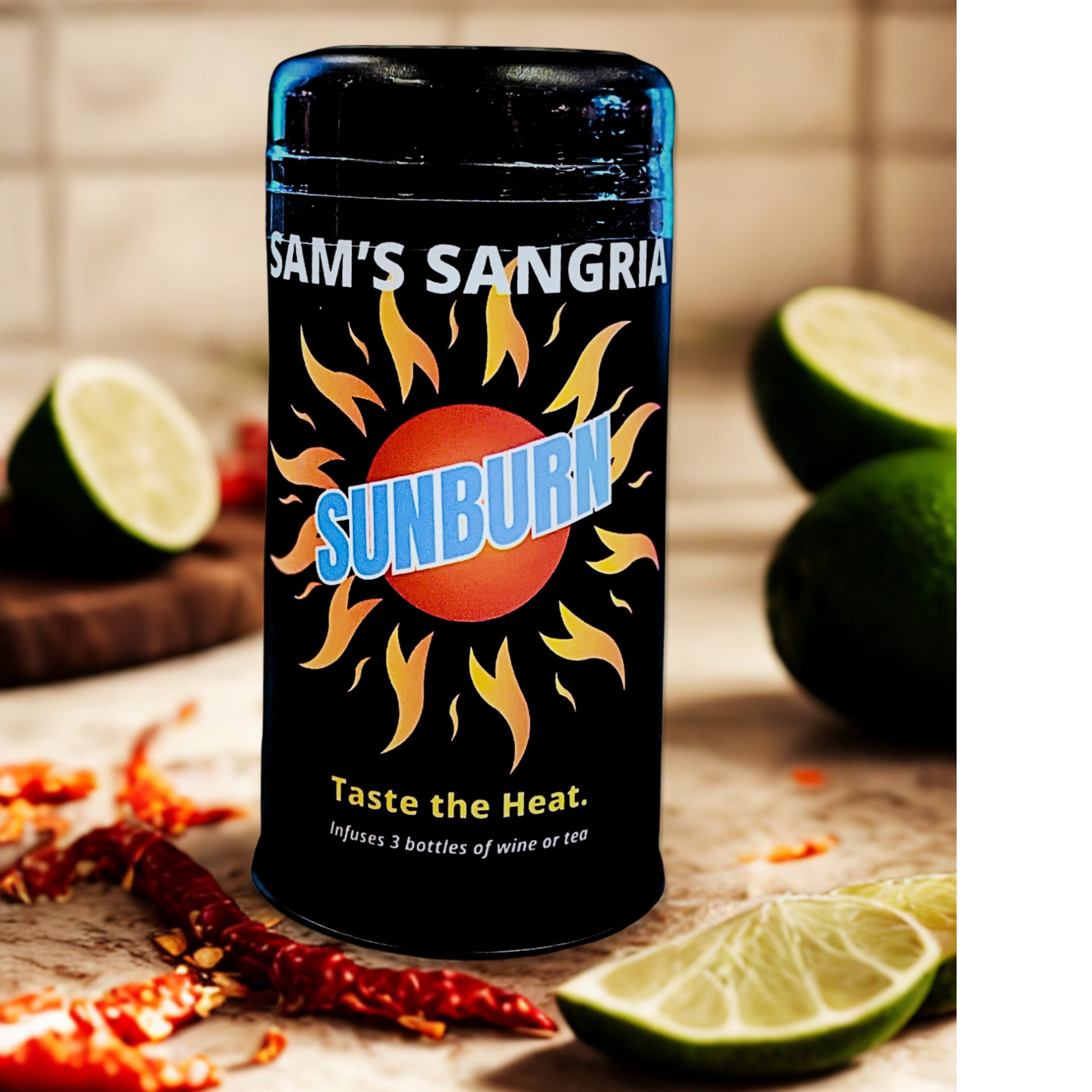 Ignite your summer with our exclusive chipotle sangria mix, inspired by the vibrant citrus notes of Portuguese sangria. Infused with dried chipotle peppers and Boozn Sam’s signature spicy twist, this bold blend delivers a smoky, zesty kick. Garnish with dried chili peppers for a fiery, crowd-pleasing drink.